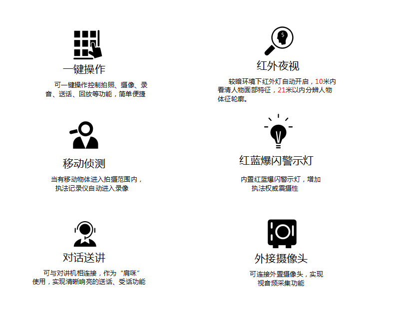 金荣中国DSJ-200F 执法仪(法院/政府/城管)拍摄像素高达5000万,广角镜头137,拍摄画面精细而全面,大容量电池支持陆续在工作12小时不断电